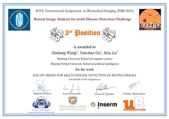 BV伟德官方网站谷云超团队获IEEE ISBI 2021 Retinal Image Analysis for multi-Disease Detection竞赛季军