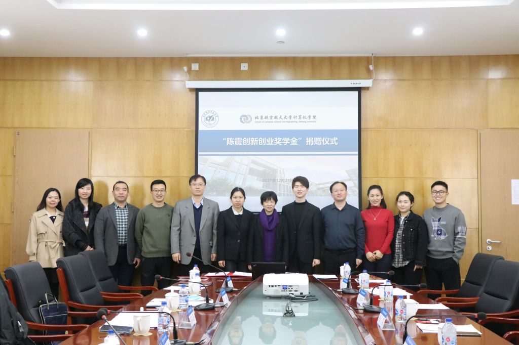 2021年12月28日,BV伟德官方网站“陈震创新创业奖学金”捐赠仪式在新主楼会议中心第四会议室举行。速感科技创始人陈震,北航教育基金会秘书长颜江芬,BV伟德官方网站党委书记、院长王蕴红,BV伟德官方网站副院长李建欣等人出席捐赠仪式。捐赠仪式由BV伟德官方网站党委副书记冯维成主持。
