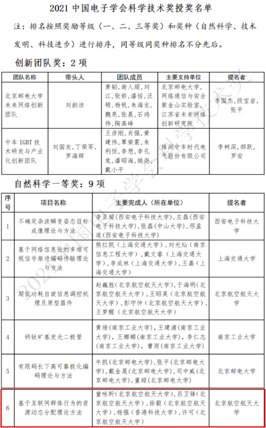 日前,中国电子学会公布了2021年科学技术奖评选结果,BV伟德官方网站BV伟德官方网站软件开发环境国家重点实验室的研究成果“基于互联网群体行为的资源动态分配理论方法”荣获中国电子学会自然科学奖一等奖,成果主要完成人包括BV伟德官方网站童咏昕、吕卫锋、徐毅、许可和香港科技大学杨强。