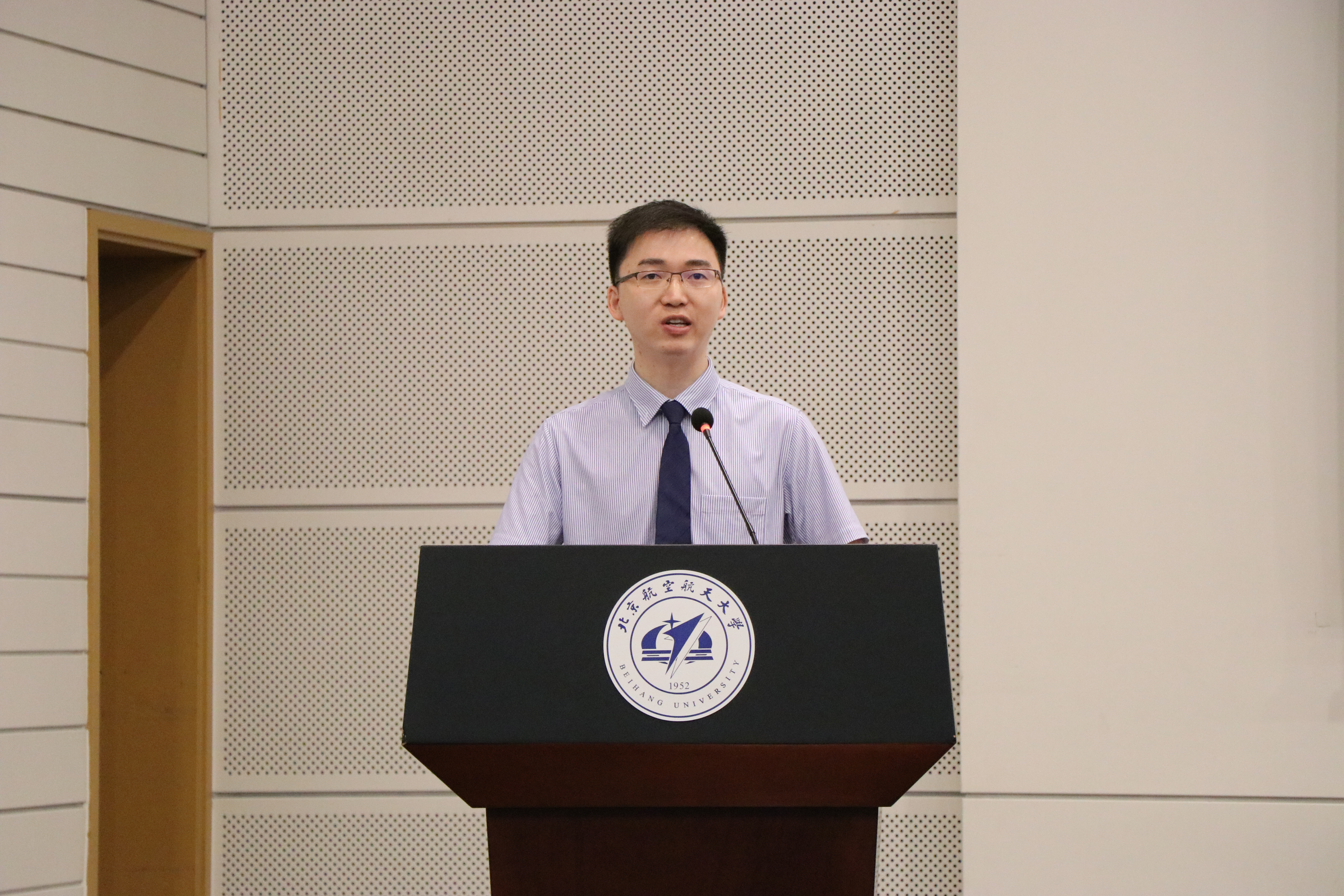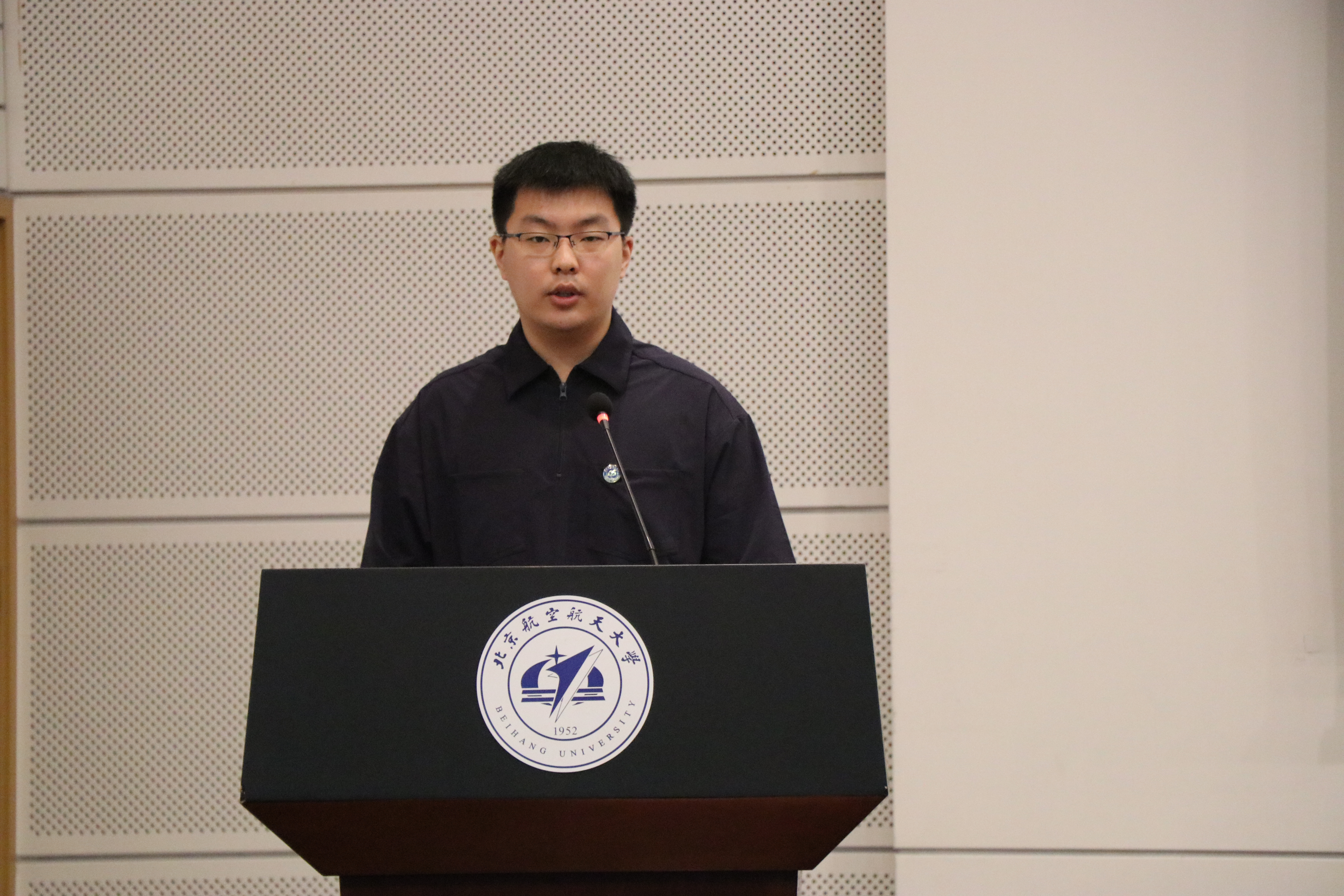 教师代表王静远老师分享了两位优秀学生在BV伟德官方网站发光发热、为国家疫情防控研究舍小我为大我的事迹。并对同学们提出了殷切的期望,期望各位同学珍惜在校时光,专心科研,知行合一,勇于实践,厚植爱国主义情怀,为空天报国献出自己的一份力量。