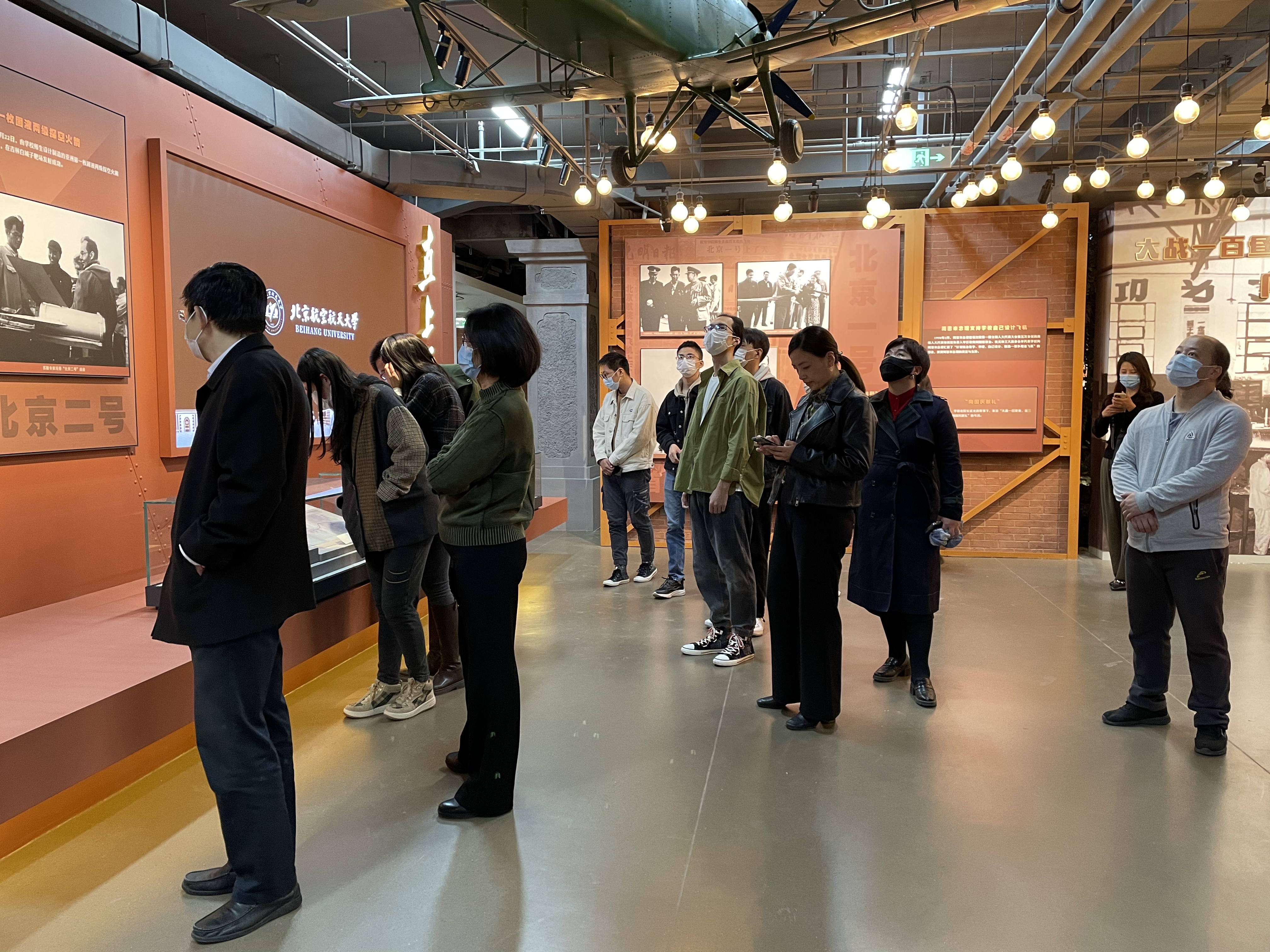在“两弹一星”、“沙丘驻涡火焰稳定器”、“北京一号”、“北航一号”等重大科技成果面前,大家深入交流,切身感受白手起家、艰苦创业的奋斗历程。
