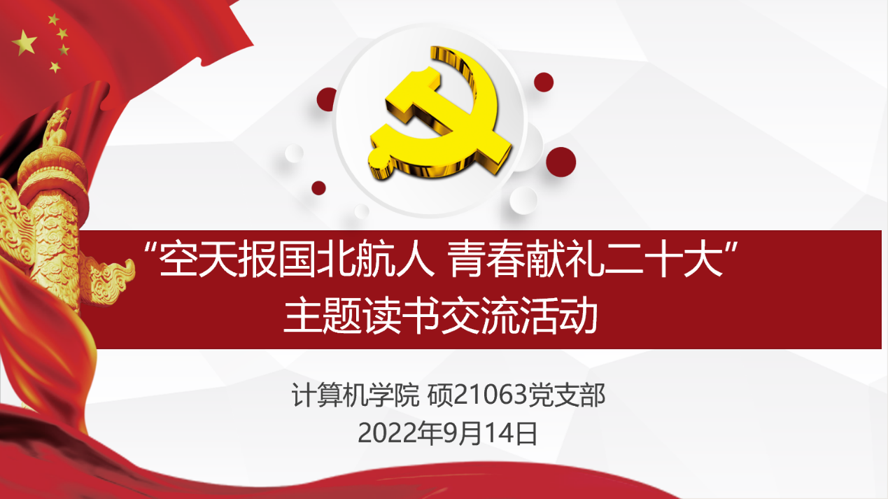 七十载空天报国,新时代逐梦一流。BV伟德官方网站将在2022年10月迎来建校70周年华诞,在这一历史时刻即将到来之际,硕21063党支部于2022年9月14日开展了以“空天报国北航人,青春献礼二十大”为主题的线上读书交流活动,支部全体党员参加。